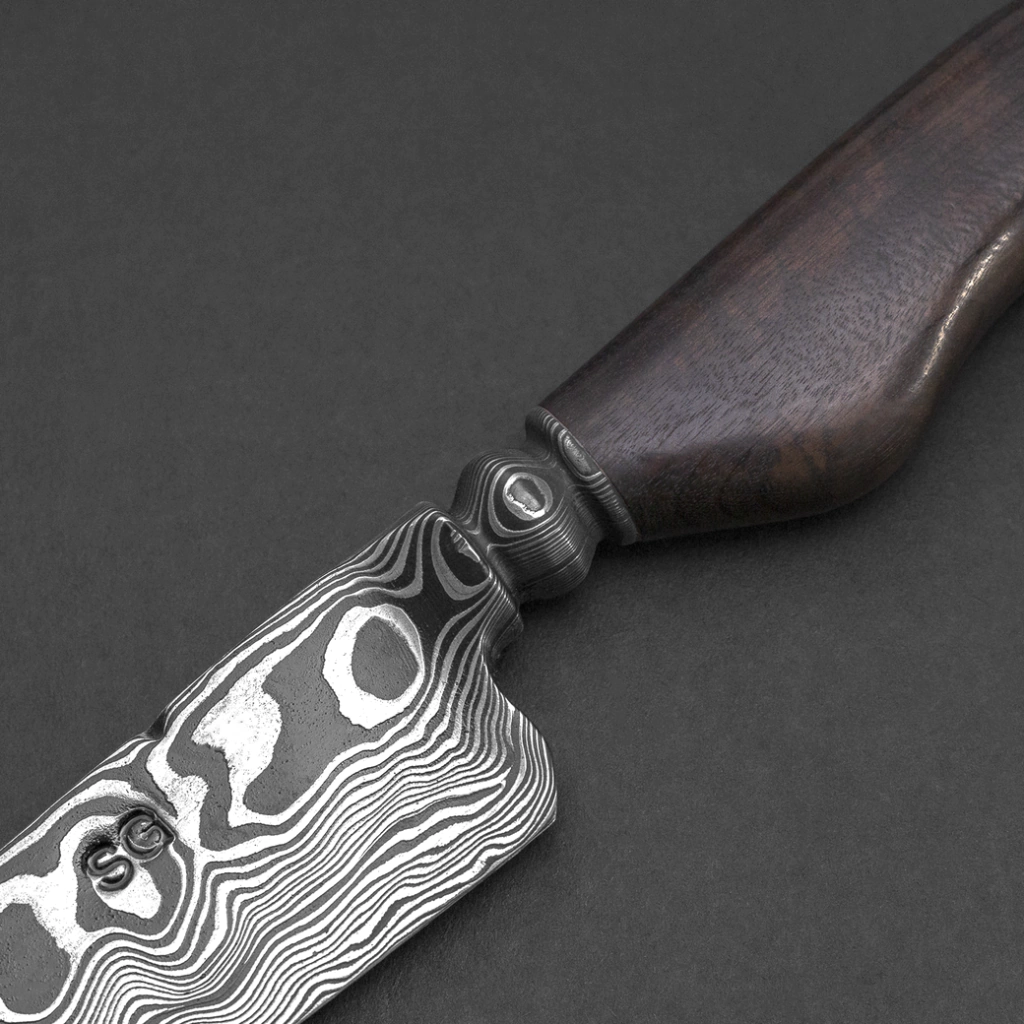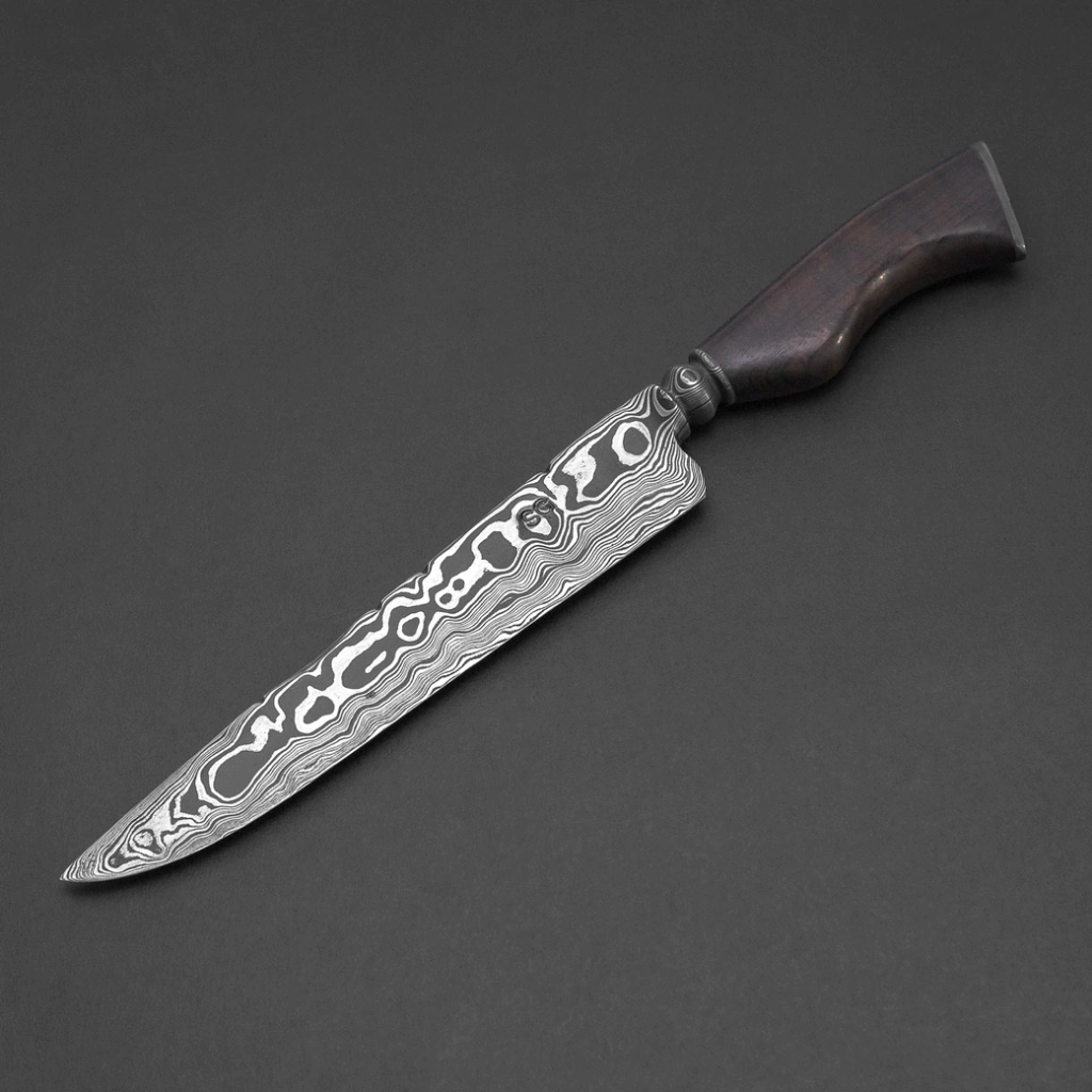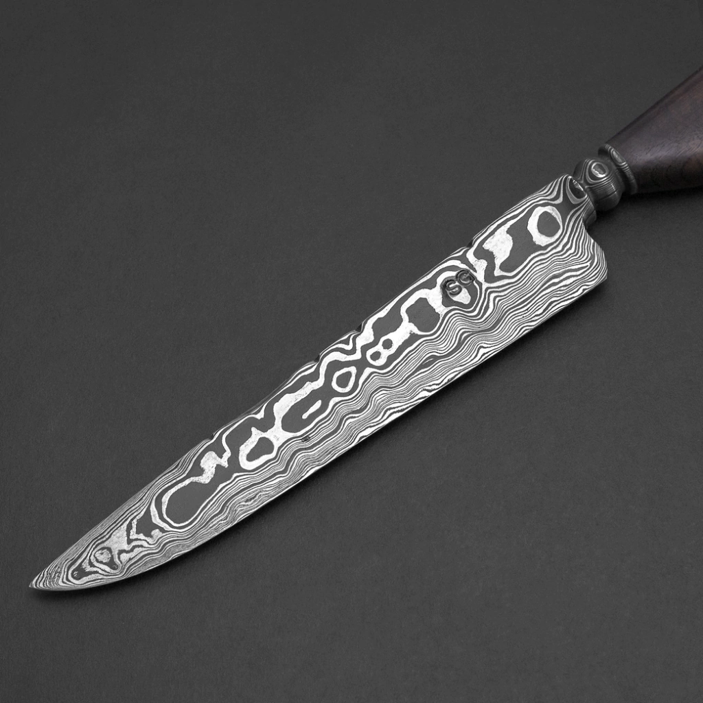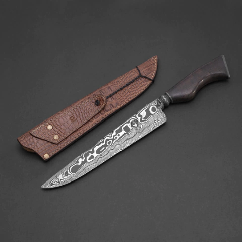 Uma peça que une tradição e tecnologia, a Faca Damasco Aleatório Ponta Larga é ideal para colecionadores e chefs que buscam performance e exclusividade. Com lâmina robusta de 5 mm feita com mais de 360 camadas dos aços 15N20 e 1070, ela oferece durabilidade, equilíbrio e padrões únicos de Damasco que tornam cada peça singular.